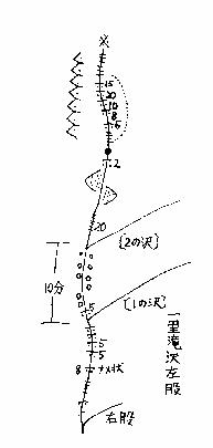 滝を越すと、沢が右から入る。水量は一対一である。左股には五メ