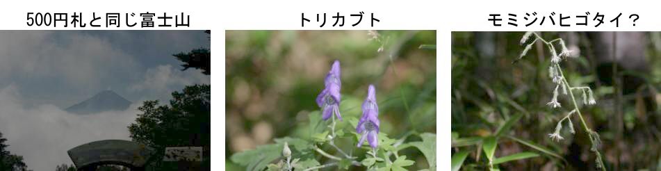 仙人通信25(雁の腹摺山1874→黒岳1988m) 10月11日、甲府気象台は富士山に初冠雪を観測したと報じた。12日は秋雨から一転し晴天日だそうだ。 そこで旧500円札の藍色に印刷された雁の腹摺山からの富士山を観に行くことに決めた。 湯ノ沢の入口に車を止め、大峠まで林道を歩き、雁の腹摺山をピストンし、黒岳から湯ノ沢峠を越え 車に戻る6時間強のコースとした。 8時半、林道は霧が濃く視界は30m程である、果たして富士山は見えるか不安はあるが、天気予報を 信じた。林道を歩き始めて観ると道端に花が多い。最初に目に飛び込んできたのが、鶯色をしたおちょ ぼ口に白い花弁を付けたマンテラらしき花だ。ヤマシノギク・シロヤマギク・紫色のナギナタコウジュ・ ソバナ・アキノキリンソウ・二ガナ・先端に赤紫の2弁の花を付けたシオガマ・アキノチョウジである。 大峠までは花を眺めて、秋の山路の散策(アスファルト道・75分)であった。 峠の上空は青空である が、周囲は霧が濃い。雁の腹摺山は、峠東側の登山道に沿って約1時間の登りである。整備された登山 道であるが、濡れた広葉樹の落ち葉で、靴がよく滑る。一寸登ったら、沢に筧が掛かった水の補給場に 出た。偶然、木漏れ日が射してきて、トリカブトの花に当り、紫の花弁を浮き上らせた。瞬間の出来事 であったがカメラを構えた。沢沿いの登山道には、沢山のトリカブトが咲き、綺麗である。沢の岩で気 が付いたのだが、甲府盆地を取り巻く金峰山から大菩薩・この小金沢一帯は花崗岩であり、雁の腹摺山 はその東端に当るとの事である。なんと露頭の岩は全て花崗岩である。トリカブトに混じり、タテヤマ 薊・山薊・モミジハグマ・リンドウも瑞々しい。山頂の草原に着き後ろを振り向くと、雲の上に黒く浮 かぶ富士山が望めた。半ば諦めていただけに嬉しさが込み上げた。[誰もいない静かな山頂を一人占め 出来、この富士山だ・興奮してシャッターを切った]。大峠から赤谷ヶ丸までは、熊笹と広葉樹林帯の 急な登りで35分程かかった。その後、広葉樹林からシラビソや樅等の原生林に替り、足元はスギゴケ等 の苔蒸す尾根道となった。春に咲くバイカオウレンの小さな葉が一面にあり、開花時を想像させる。峠 から75分で、針葉樹林で視界が悪い、狭い黒岳山頂に立ことができた。 白屋ノ丸を過ぎると、茅の穂が生い茂る草地に出た。目の前には無線のアンテナの立つ三つ峠・丹沢・ 箱根・鳳凰三山・南アルプスが雲海に浮かぶ。富士山は雲海が攀じ登り、時折しか顔を出さないのだが 眺めは雄大だ。こんな綺麗な雲海を眺められたのは何年ぶりか。足元には背の低いマツムシソウが紫の 花を付けて迎えていてくれた、嬉しい限りだ。花崗岩の風化したザレ場を過ぎると湯ノ沢峠である。 ここからは背丈ほどある熊笹の中を沢沿いに1時間程下る。霧が出て視界が悪く、瀬音を頼りの下山で あるが、トリカブトやピンクのシラネヒゴタイが勇気をくれた。ふと見ると目の高さに、白いジイソブ (ツルニンジン)が咲いていた。最後に花の温もりを感じた。(h17.10.12)