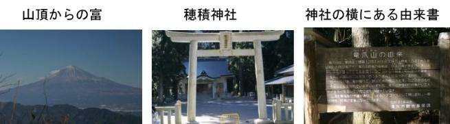 仙人通信30(竜爪山1051m) 竜爪山は駿府城の鬼門の備えとして、叉江戸時代の山岳信仰と相まって知名度が高い山である。 国立公文書館の「駿河竜爪山の由来」には時雨窓山(じうそうざん)や多くの天竜が飛び交い、爪を落 とした事等に由来すると、奥田住職のホームページにある。一方、清水市教育委員会はヤマトタケルが 東征の折り、この山にて時雨れに襲われ衣を濡らしたことから、時雨[めぐる]山→じうそうざん→リ ュウソウ山→竜爪山となったともある。薬師岳(1051m)と文殊岳(1041m)の2峰からなる 山で、日本平PAからも良く見える形の良い山である。 草薙駅で藤枝バイパスを降り、瀬名ICから平山温泉の先にある登山道入り口の駐車場に車を止めた。 登山道は新旧からなるが、沢沿いの旧道を選んでみた。さすが山岳信仰の山だけの事があり、竜爪山権 現を祀る穂積神社までは35丁目までの道程杭が丁目毎にあり、自然石の階段も整備されている。 沢の西側には安山岩の層理が山頂に向かい10度程の傾きで6丁目位まで観察できる。 この山は、国界橋→韮崎→早川→興津川から成る糸魚川・静岡構造線と阿部峠から阿部川の東岸を通る 十枚山断層の中間に位置し、十枚山・真富士山・竜爪山・賤機山を通り焼津の高草山へと繋がる竜爪層 群と呼ばれ、ホッサマグナの南西縁であると言う。岩石は安山岩とひん岩を主体とする山だ。 約1時間程で白い石の鳥居の立つ穂積神社に着く。この間は、杉・桧の林が主体で視界は良くない。 穂積神社は銅板葺きの白いコンクリートの社である。神社の裏手から杉の巨木の中を10分ぐらい歩く と、鉄の階段だ。10段位毎に九十九折となり400段近い急な登りが続く。20階程の高層ビルの非常 階段を上る感じだ。さらにコンクリート丸太の階段が続き、神社から40分程で俵峰との分岐点に立つ。 振り返ると雲一つ無い富士山が愛鷹山を抱えるように聳えている。文句のつけようもないのだが、時折 突風が轟音と共に興津川から吹き上げ、体を屈めるようだ。杉木立の中の薬師岳山頂に10分程で着く。 当然、視界は良くない。石の社に置いてある寒暖計は、-3°Cを示しているが風が強い分だけ寒さが 身に凍みる。木立の中を20分程歩くと文殊岳の山頂に着く。こちらは草地もあり見晴らしもそこそこ だ。一等三角点の山だけの事はある。富士山の左手には白く雪化粧した大菩薩峠・右手には愛鷹山・浜 石岳・真下にはコバルトブルーの清水港と三保の砂嘴や松原・阿部川の緩やかな流れで抱えられた静岡 市内・太陽を反射して雲母(キララ)状の駿河湾・御前崎までも見える。しかし、肝心な南アルプスは 林に遮られている(残念)。山頂で昼食を取り、ノンビリと眼下を眺めてから腰を上げた。 約4時間の山登りであった。平山地区には谷底に500円で入れる素朴な温泉があり、硫黄の香りを嗅ぎ ながら湯に浸かり、地元の年寄と富士山談義を楽しむ事が出来だ。 茶の葉が輝く里道を帰路に着いた。満たされた一日でした。(h17.12.25)
