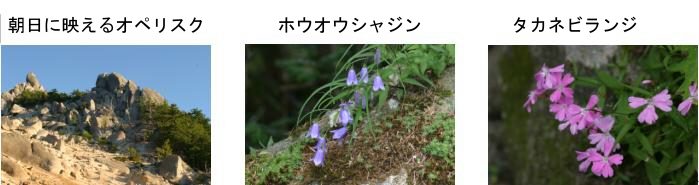 仙人通信44 鳳凰三山(2780m) 40年ほど前になるだろうか5月の連休に夜叉神峠から観音岳を越えた所で、地蔵岳の雪の多さに恐れ をなし、鳳凰小屋に下山してしまった。後で地蔵岳に登れなかった事が悔やまれた。ところで今の時期、 鳳凰三山では固有種のホウオウシャジンとタカネビランジが咲く。青木鉱泉から鳳凰三山を廻るコース を計画した。クサボタンやピンクのツリフネソウが咲く、青木鉱泉の駐車場からのスタートである。 林の中では、フジクロセンノウ・フジアザミやタカネコンギクが目を引く、更にタカネナデシコ・ハハ コクサ・萩と白い花崗岩の川原に秋の花が映える。鳳凰三山から甲斐駒ケ岳までは花崗岩で、白根三山 の四万十層とは異なり、咲く花も異なるようだ。やがて道は、ドンドコ沢の右側の唐松や白樺の林に入 り、瀬音を聞きながらの登りとなる。奇妙な沢名と思っていたら鳳凰小屋の親爺の解説では、山岳信仰 で、人生の再興を願った人が日蓮宗の僧侶を伴い、団扇太鼓を敲いて登った事に由来するとの事。言わ ば裏登山道であり、その厳しいコースが現在も残されているのだとの事である。そんな謂れに何となく 合点した。又多くの滝とも出会えたり水場もあり、ゆっくり登るのに適しているようだ。開花が遅れた レンゲショマが可愛い白い花で迎えくれる。トリカブトやヒメコゴメクサも多い、又白い尾穂状のサラ シナショマ、そしてヤマハハコやカ二コウモリも目に付く。白糸の滝を過ぎて、ちょっと疲れを感じた 時、目の前の岩にピンクのタカネビランジが30cmもある大きな株を成して咲いていた。嬉しさの余り 周囲を見ると、ダイモンジソウも見事な花だ。何よりの一服であった。黄色いアキノキリンソウ・オタ カラコウ・マルバタケブキも賑わう。6時間15分で、ピンクのヤナギランに埋もれた鳳凰小屋に着い た。山小屋のコタツで親爺と、たまたま集った4人の昭和19年生まれで夕餉までの間、人生観を交え た山談義に幸せな時間を過した。朝5時に山小屋を飛び出し、シラビソやダケカンバの中を30分詰め ると、朝日にオペリスクが神々しく現れた。更に30分ガレバを詰め、お地蔵さんの祭られた地蔵岳の 山頂に到着できた。花崗岩のオペリスクに両手で触れ、山頂に辿り付いた喜びを肌で感じた。稜線はヒ メコゴメグサ・ホウオウシャジン・タカネビランジ・ヤマホタルブクロ・イワインチンが至る所に咲い ていた。90分ほどで観音岳(2780m)の山頂に着くと黒々とした綺麗な富士山・秩父の山・甲斐駒・遠 く北アルプス・白根三山等が雲海に浮ぶ。更に約30分で薬師岳の山頂に着いた。目の高さに黒いレン ズ雲が現れた。明日は朝から雨か、今日のよい天気に感謝・感謝だ。尾根のハイマツからホシガラスが 飛び立つので、見回すと啄んで落とした松ぼっくりが落ちている。殻を剥して噛んでみると、烏が啄 ばんだだけの事はある。市売の松の実に遜色がない。ついでに赤く熟れたコケモモも齧ると酢っぱさが 口に広がる。これぞ仙人のご馳走だなんて苦笑した。下山はダケカンバ・シラビソ・唐松と植生が変わ るものの、見通しの利かない高低差1700mを3時間半掛けて林道に辿り着いた。今回唯一つ残念だった のは、青木鉱泉がお休みで湯に浸かれなかったことかな〜。(h18.9.5)
