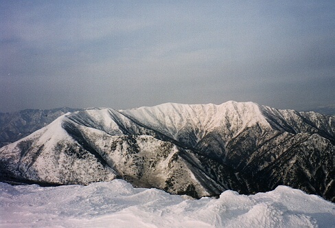 甲子旭山頂から流石、三倉、大倉の山並を見る