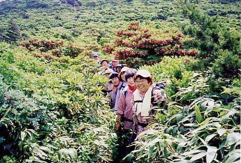 サラサドウダンの花の中を行く