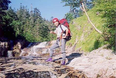 8/17(木)赤木沢二番目の滝をバックに植木