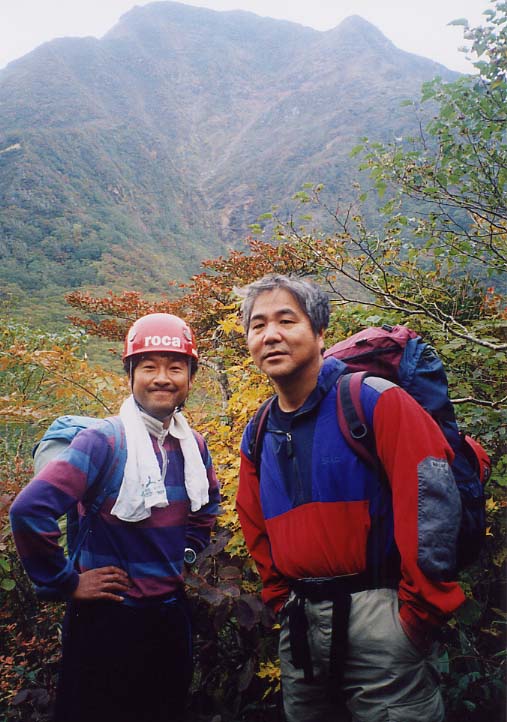 色付き始めた甲子旭岳をバックに