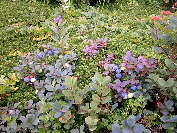 小潅木帯に目をやると、クロマメノキの実が黒く色づいていた。摘んで食べてみるとすっかり熟していた。