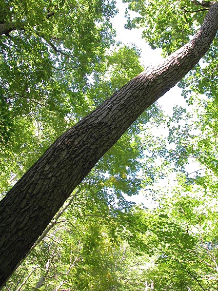 ひうち裏林道を引き返し、車で尾瀬口山荘に移動する。ここから渋沢小屋へのブナ林の登山道を散策 する。この原生の森に入ると何故か心が和で来るような思いになる。素性の良いセンノキのふもとに立 って空を見上げていると、天からキラキラと森の命が降り注いで来るような思いにさせられた。