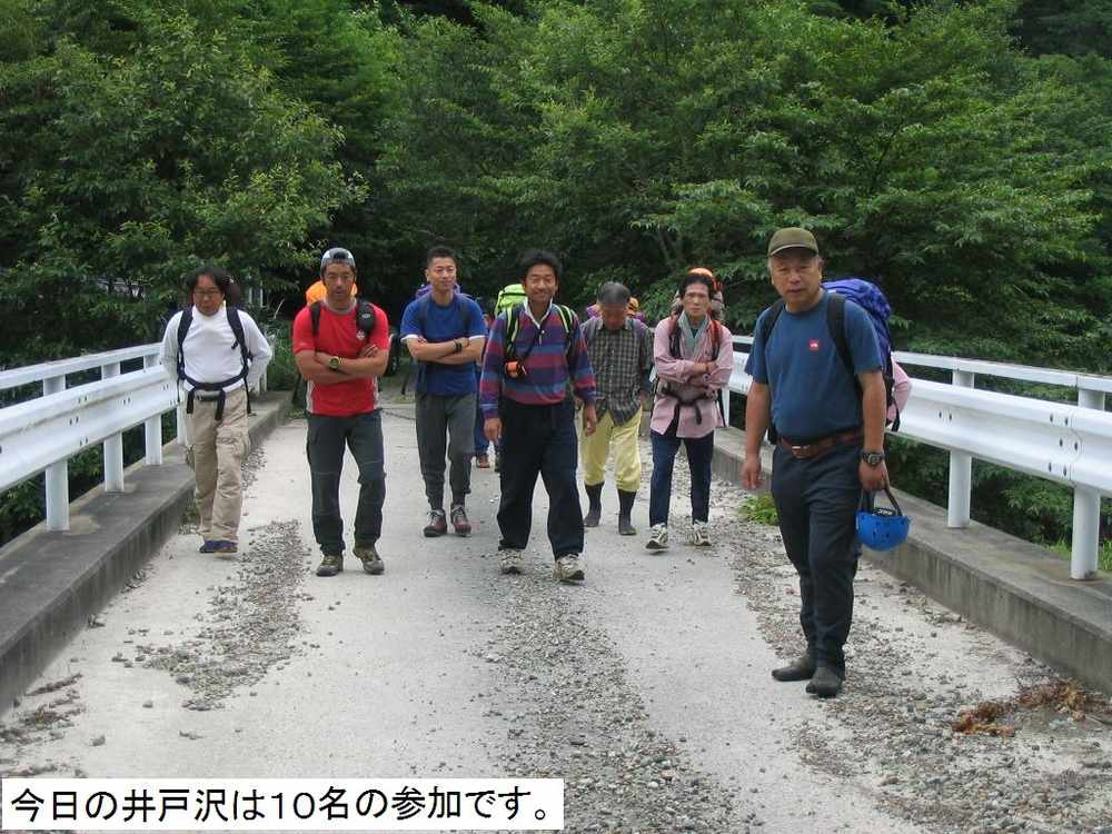 毎年恒例の井戸沢に岳友会のメンバー10人で行って来ました。この日は朝から照らず、降らずのお天気です。