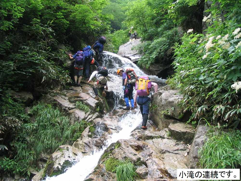 《日程》 事務所6:00===7:25林道終点7:33---8:30入渓点8:44---11:30二股12:00---12:56流石山14:28