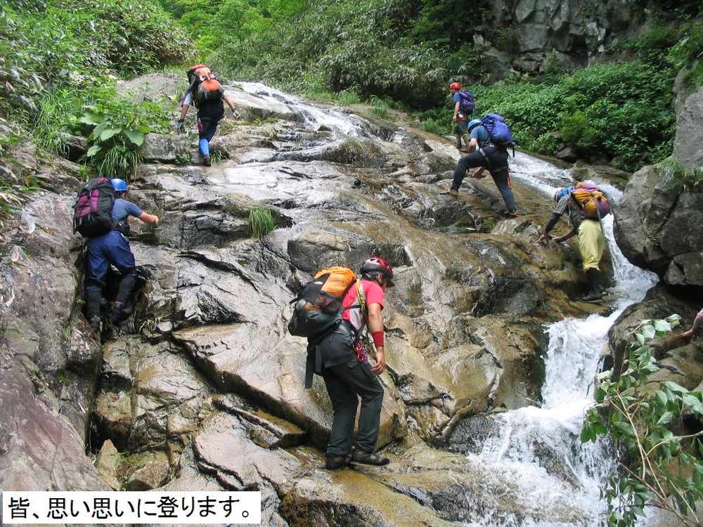 に分かれて進みます。この後も次々に現れる滝を各自思い思いに登ります。