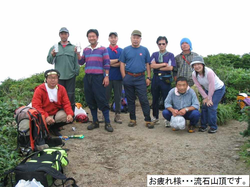 流石山頂で冷たい麦酒で一息入れます。大峠に下る頃にはやはりいつものガスが周りを包み始めました。