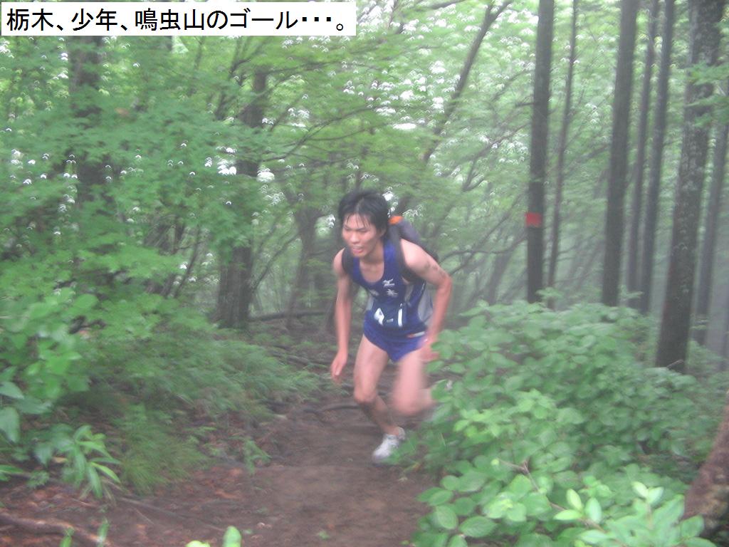 ら45分後には少年の部の選手がトップで鳴虫山山頂に飛び込んでくる。この後も、少年、成女、少女の選手達
