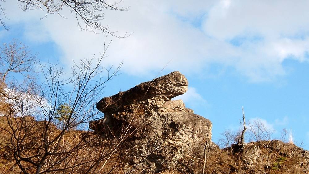 した。右手の高方には切り立った岩峰が続いており、驚きの声を上げながら歩きました。昼食はあづまやの中で
