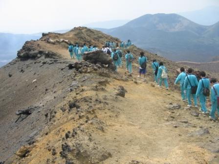 中岳手前で高校生の団体と出会う。こちらもこんにちはの大合唱〜。やっぱ、阿蘇は人が多いのを痛感する。中岳