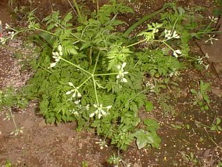 2年前に買ってきて植えたのですが、いつの間にか消 えてしまいました。 色々植えていると庭には合わないハーブが結構ある ので、すっかりチャービルのことは忘れていました。 昨年、プラムの根元に人参にちょっと似た葉が出てき たのは知っていましたが、気にもせず放って置きまし た。今年はあちこちに出てきたので図鑑を片手に確認 したところ、あのチャービルの孫達でした。 早速オムレツにでも使ってみましょう。