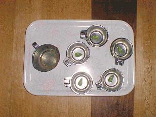 5人分の材料は ・ペパーミント中ぐらいの葉で15枚 (4センチ位の葉で換算。でもあまり 厳密でなく好みで増減して下さい) ・ゼラチンは「ゼライス」を使いました (5gで250cc作れます。) |