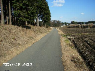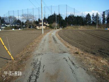 原街道その5 「将軍塚から氏家まで」 平成17,12,10 将軍塚(7:55) 高月(9:30) 子安大神(11:20) 鷲宿問屋(12:10) 松島(13:08) 箱の森(13:55) 氏家宿(14:51) 原街道も年内には行程完了にしたいと意気込みを持った4人(白石、宮内、馬場、小林)が集った。 車を将軍塚前にデポして山頂を目指す。山頂の広場からは箒川の対岸に平沢宿問屋渡辺家が望まれ その向こうに那須野が原が広がっている。 矢板市豊田地区の県道52(矢板、馬頭線)の原街道分岐には「右うじえみち、裏右おおたはらみち」 の道標がある。街道は大日坂を越えると豊田地区に入り角の雑木林の中に「大日如来」が立ってい る。営農改善センターの脇には上屋敷墓地があり、そこには水田土地改良の際、集めたのだろうか 沢山の石碑がある。ここ豊田は「那須与一」の兄「那須九郎朝隆」の稗田城があったところで、水 田の中にポツンと記念碑がある。 原街道は高月を目指して水田の中を横切っていたらしく、二軒の農家の間に道跡が残っている。 山を越えると高月で県道25(矢板、烏山線)を横切る、間もなく墓地の中に建つ大日堂があったの でしばし休憩。県道25号を少し行くと東京電力の送電線のところに地元の有志が建てた「牛街道」 の木「道標」がある。白河から辿って始めて目にする言葉で興味津々。水田の曲がりくねった道は 「西江川」の橋を渡り、湯殿神社の前から山道に入る。林を抜けると「新溜池」が右手に望まれる。 間もなく県道48号と161号の交差点である。角に「右は佐久山みち、左は平沢みち」の道標(1742年) が建っている。河戸新田から48号線(大田原氏家線)を行くと、やがて上り坂となり墓地を過ぎる と百目貫の部落に出る。内川大橋を渡ると、「子安大神」のお堂がある。入り口に「地蔵泉」の水 場があって昔、馬子たちが喉を潤したと言う。 我々もお堂の縁側で早めの昼食とする。昔の街道はここから田圃のあぜ道を鷲宿の問屋裏に出たと いうが定かでないので、74号線(塩谷喜連川線)を鷲宿郵便局に向かって歩く。右手の「松岩寺」 は鷲宿城跡だという。まもなく鷲宿簡易郵便局だが、南側に廻ると立派な長屋門のある問屋村上家 だ。火災に遭い母屋は建て替えてあるが昔を偲ばせる建物で奥に土蔵が並んでいる。松島への街道 は少し戻って石仏の所から左に曲がる。やがて喜連川工業団地の「川崎三興化成」前の広い道路に 出るが、街道は「三菱自動車テストコース」の境界添えに続いているので、急斜面を登る。薄暗い 林の中を進むと明るくなって水田の道に出る。部落は松島でバイパスが迂回しているので静かであ る。48号線に出て荒川を渡る。箱の森新田を過ぎ一路南下すると「さくら市役所」を右に見て行く と奥州街道に行き当たる。宝永6年の氏家宿の地図にはこの先 裏道らしき道は描かれて無いよう なので、原街道は宿内を通ったものと推察する。 1/9 前回時間切れの為、再度訪れた。 光明寺10:55 薬師堂11:15 椿地蔵12:23 踏み切り13:10 船魂神社13:40 光明寺の裏手には「湧水地」があるらしいので寄り道したが「五行川」の水は涸れてゴミが散乱し ていた。新しく道が整備してあったので、町外れまで歩くことにする。「鶏権現」「千手観音」 「川原石塔婆群」「薬師堂」と見るものがあった。 奥州街道道標のある古町には、私の従兄弟「阿見勝央」が在住しているのでここから「阿久津河岸」 まで同行を願った。「阿久津河岸図」には米積街道(牛街道)が描かれているので、その道を辿る には奥州街道ではなく、大谷街道を行くのではなかろうかとあえてこの道を選んだ。間もなく「椿 地蔵」を右に見ていくと、水田の中に「祠」が一つあった。阿見氏の説明では「昔ここには首切場」 があったという。耕地整理の進んだこの地には昔の街道の名残はないので、神社の森をめがけて歩 いていく。「徳の宮神社」を過ぎ采女の街道を横断してJR宇都宮線「村境踏み切り」を渡る。 国道4号線を横断すると、ゴルフ場に行く手を遮られる。仕方なく遠回りして「宝積寺台地」を登る。 目指したゴルフ場の上から街道を見ると確かに道跡がある。近くの方に聞くと以前は広い道が采女 の方向に続いていたと言う。分譲の道路整備が進んでいるのでやがてはこの街道も忘れ去られてし まうのかも知れない。砂利道をいくと通行止めの標識があるが歩行には支障が無さそうなのでその まま行く。馬坂(懐坂)を下って行くと「高尾神社」の前に出た。県道125号線を横切り昔の道 「小荷駄道」を進むと「船魂神社」前に到着。白河から遥々の原街道(牛街道、米積街道、原方街道) の終点である。