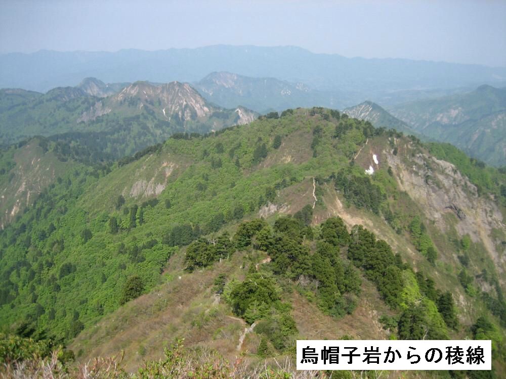 烏帽子岩ともう一箇所の岩場には鎖場があるが、周辺の雪が解けていたので、安全に行けた。
