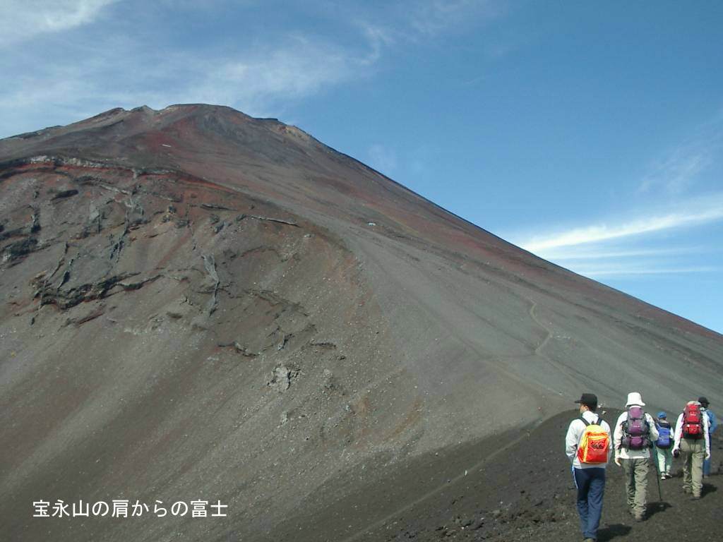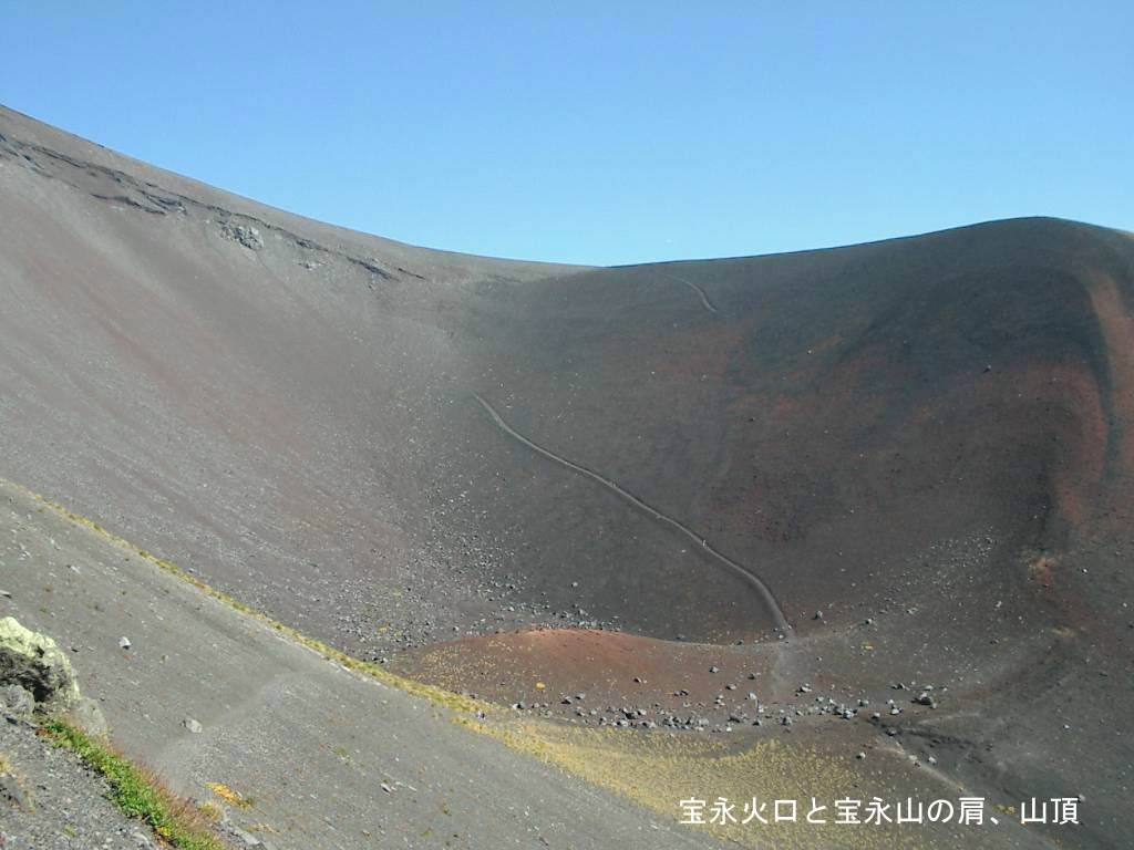 再び宝永山の肩から伸びた傾斜の急なジグザグにざれた道を登った。