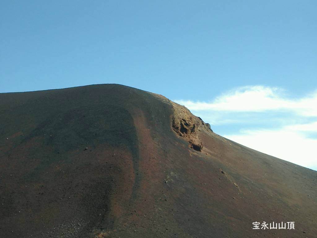 そして、宝永山はその火口の東側の縁から伸びた尾根の先に茶色く変色した頂を見せていた。