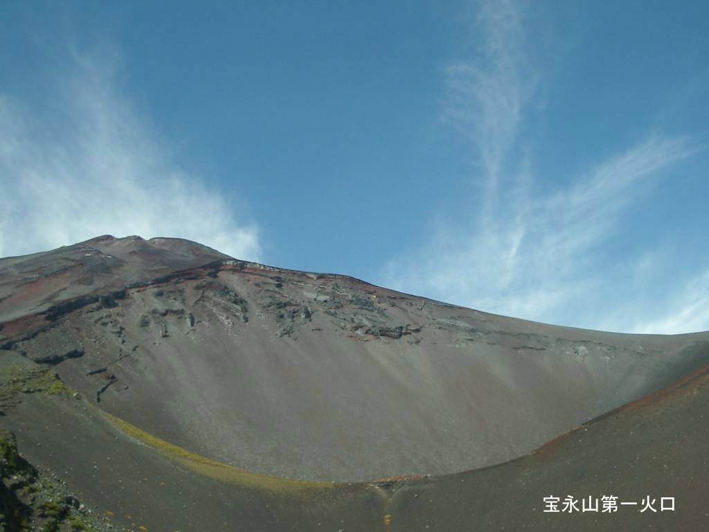 傾斜のきつい富士山腹に開けられた大きな火口。