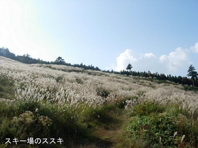 身支度を整え、登山開始です。歩き始めてまもなく、スキー場のゲレンデとの境を登って行きます。