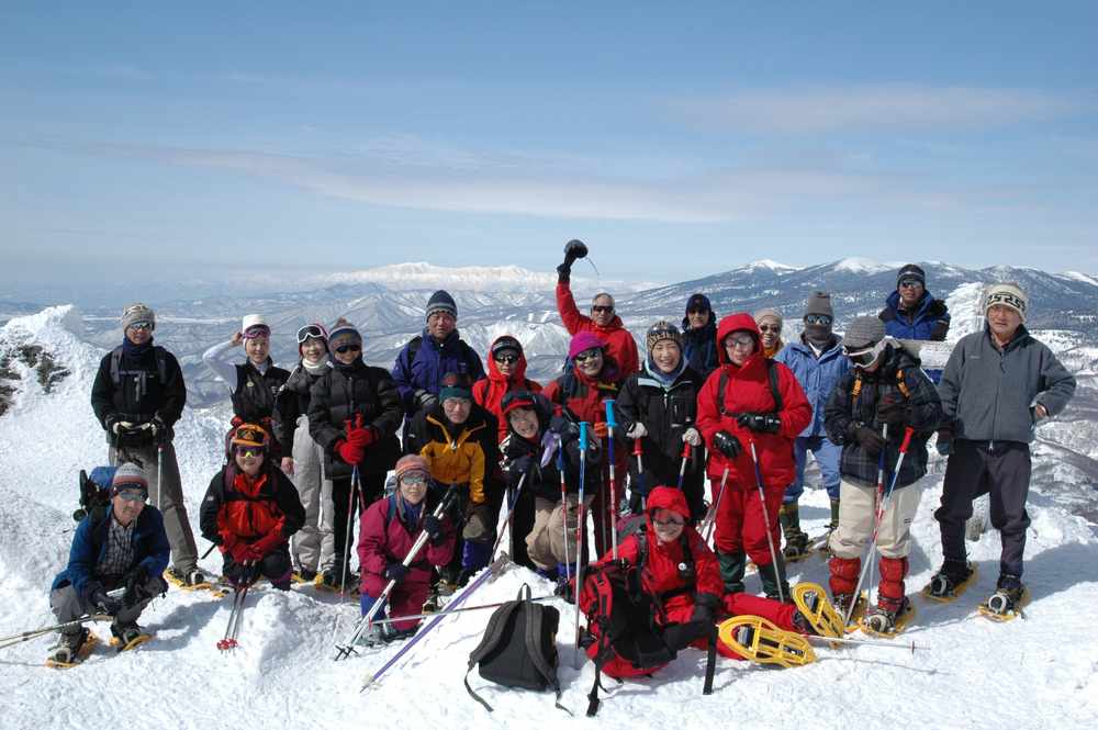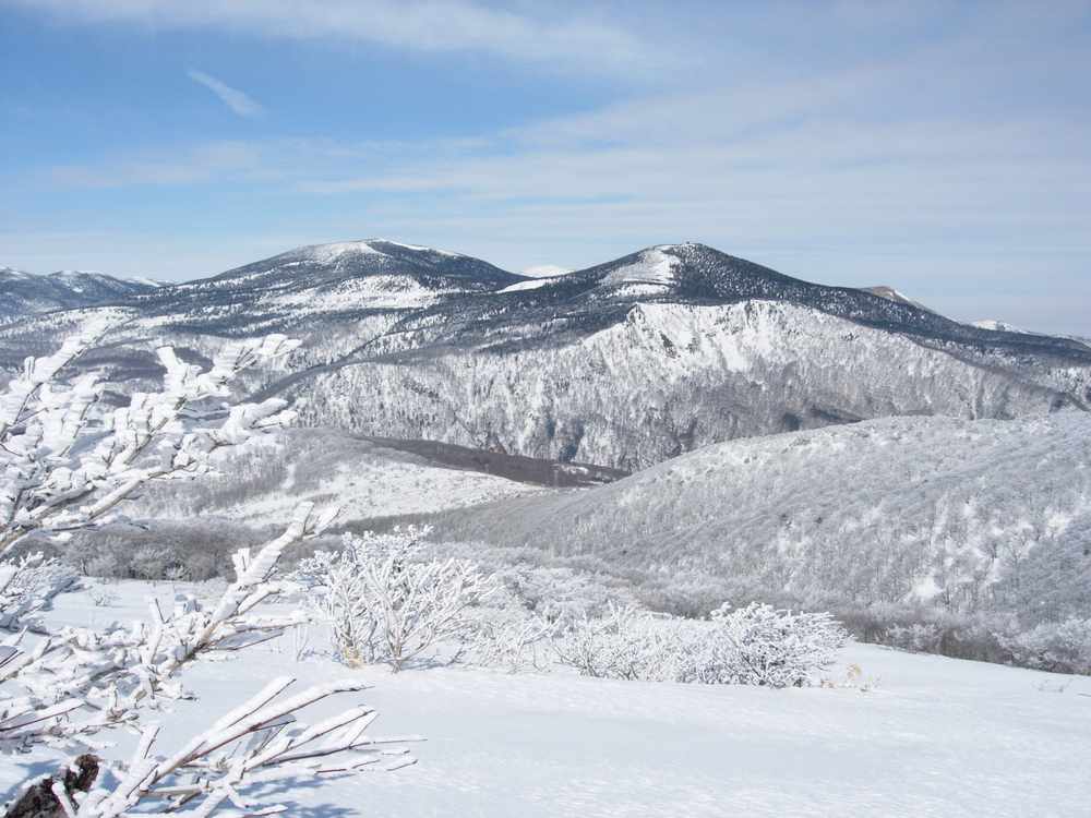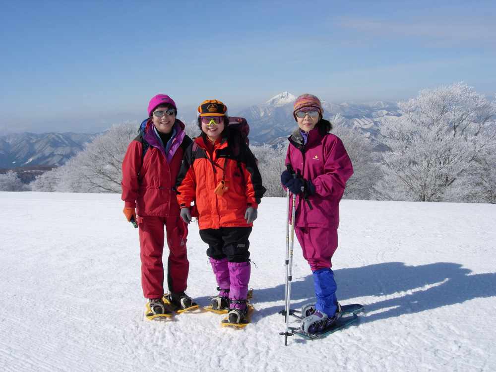 山頂からは、絶景の磐梯山、安達太良山、那須連峰、飯豊連峰、吾妻連峰等の山並みが雪化粧し、とっても美しく見えま
