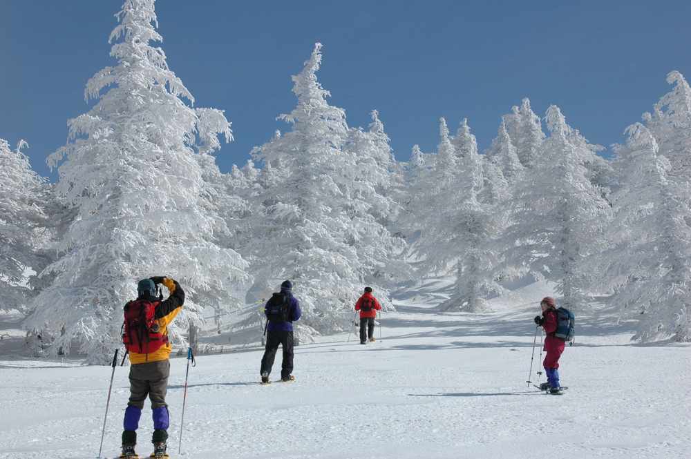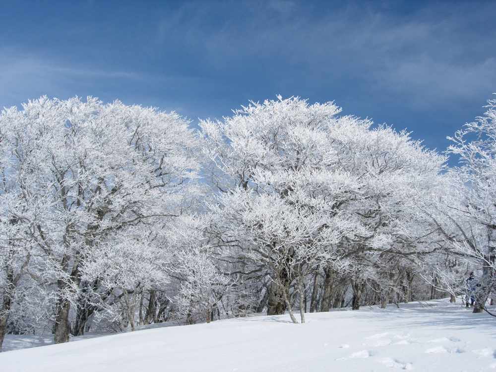 昼食の後は、樹氷を付けたダテカンバやブナの木々の中を下って来ましたが、まるで 「白い珊瑚」を見ている様で、本当