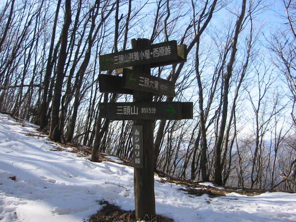 登って行きますが、所々 急登もあり息を弾ませながら登って行くと、「三頭山」山頂に着きました。