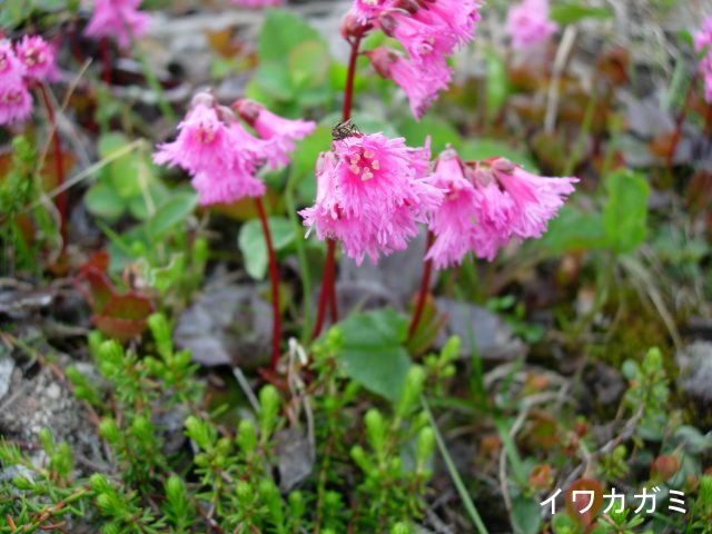 山 行:鬼面山(福島県)/西吾妻山(山形県) メンバー:赤羽 ・椎名・板山・ 他 5名 日 程:平成18年6月17日(土曜日)〜18日(日曜日) コ ー ス:17日 : 沼尻ロッジ⇒⇒⇒新野地温泉(11:50)→→→鬼面山(13:30)(14:00) →→→新野地温泉(15:00)⇒⇒⇒土湯峠湿原散策⇒⇒⇒沼尻ロッジ(16:20) 18日 :沼尻ロッジ(7:10)⇒⇒⇒湯元駅前(8:10)→→→ロープウエー/リフト→→→ 北望台(9:15)→→→西吾妻小屋(11:10)→→→西吾妻山頂(11:20) →→→ 人形石(13:10) →→→北望台(14:00)→→→リフト/ロープウエー(10:40)→→→ 湯元駅前(15:10)⇒ ⇒ ⇒沼尻ロッジ(16:10) 6月17日(鬼面山) 沼尻ロッジで、身支度を済ませ新野地温泉に向かいました。 新野地温泉登山口から登り始めて分岐点で昼食にしました。 昼食後鬼面山に向かって登っていく途中にハンショウツルの花が咲いていました。 何度も登っている方が「ここでハンショウツルの花を見るのは初めてだなぁ」 と、言ってカメラのシャッターを切っていました。鬼面山の山頂にはイワカカミが沢山咲いていました。 下山は分岐点から野地温泉に下って行き、車がある新野地温泉まで行きました。 その後、土湯峠湿原まで車で移動し 湿原を散策しました。 湿原には、ワタスゲが沢山咲いていました。今夜の宿 沼尻ロッジへと向かいました。 夕食は、生ビールで乾杯・・・・・・・・(お休みなさーい☆☆☆) 5月18日(西吾妻山) 沼尻ロッジから西吾妻山に向かいました。 ロープウェイとリフトを乗り継ぎ終点まで行きました。登り始めは、木々の中を登って行く為、 熱くて仕方ありませんでしたが、大凹に出た頃は風が抜けて心地良くなって来ました。 しばらく歩くと雪渓にでます。雪渓をトラバースし 20〜30分位歩いた頃 湿原の中の木道にでました。 木道の辺りは色々な花が、咲いています。(イワカガミ/チングルマ/ヒナザクラ/ベニバナイチゴ等) 吾妻神社でお参りをした後、西吾妻山頂へと向かいました。山頂は狭く木に覆われている為 残念ながらどこも見渡すことが出来ませんでした。 下山は梵天岩に向かい梵天岩からお花畑を眺めた後、水場で冷たい水を飲んで咽を潤し、人形石へと向かいました。 人形石の所には、チングルマとイワカガミが競って花を咲かせていました。北望台に向かい、ここからリフトと ロープウェイに乗り継ぎ湯元駅前に戻って来ました。車に乗り込み沼尻ロッジへと戻りました。 沼尻ロッジで温泉に浸かり汗を流し、栃木へと帰って来ました。 天気は、曇り空で、傘を差す事もありましたが、まずまずの天気で良かったです。 皆さん楽しい山行有難うございました。(⌒★⌒)