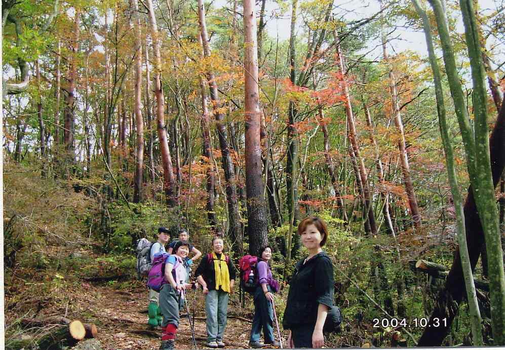 山行 : 扇山 (山梨県) メンバー: 板山 他6名 日程 : 平成16年10月30日(土曜日) から 31日(日曜日) コース : 30日 : 運動公園(20:30)⇒ ⇒ ⇒ ⇒ ⇒ 百蔵山登山口(12:30) 31日 : 百蔵山登山口(8:30) ⇒ ⇒ ⇒ 梨の木平(9:10) 梨の木平(9:30)〜〜〜扇山山頂(11:15)(12:00)〜〜〜梨の木平(13:00) 梨の木平(13:30) ⇒ ⇒ ⇒君恋温泉(入浴)⇒ ⇒ ⇒運動公園(18:30)