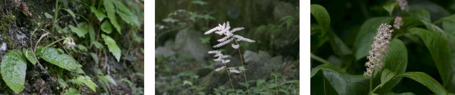 (開花前のイワタバコ) (トリアシショウマ) (マルミノヤマゴボウ)