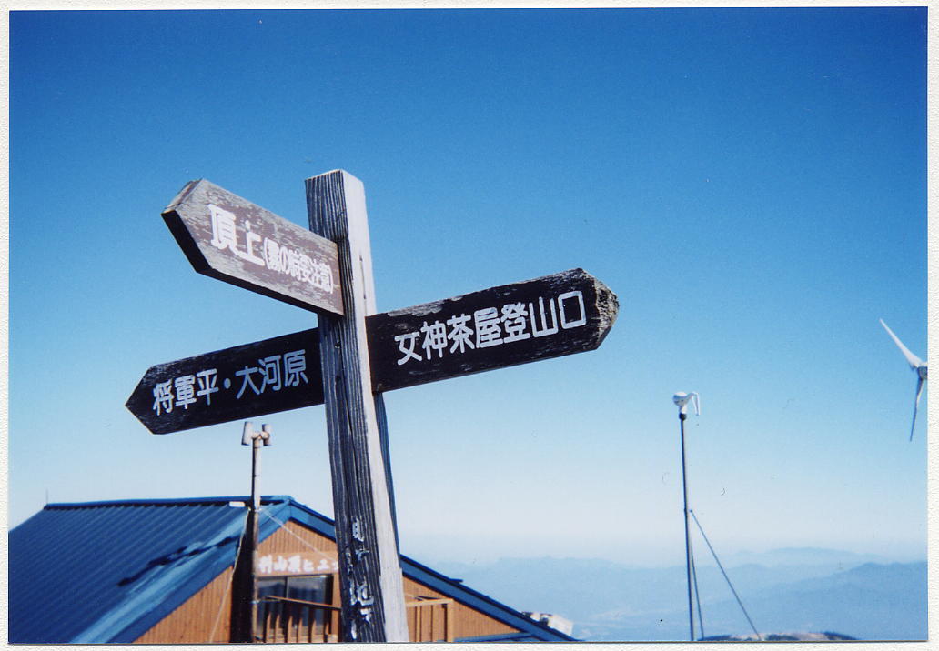 山頂の展望台からは 南、中央、北アルプス、八ヶ岳連峰の山並みが見え 、眼下には
