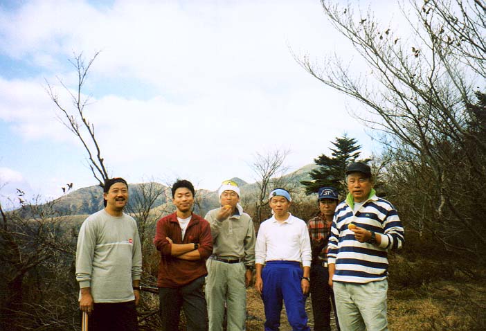 笹刈りに向かう途中(左から野沢、佐藤、植木、梅原、漆原、小林会長)