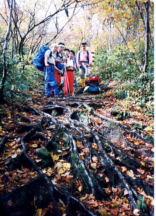 清太岩山から日暮沢小屋の下りで見かけた木の根っ子。