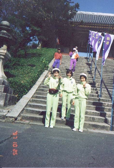 10月25日開会式後・大阪府太子町の宿舎前にて(選手3人・・・左が有沢さん)