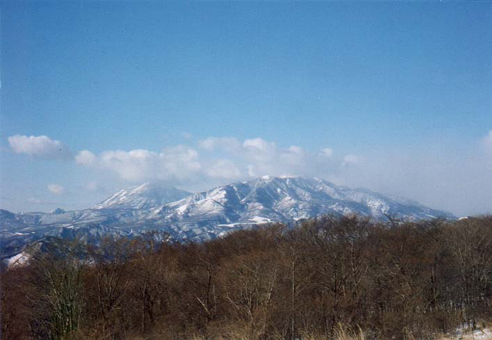 西平岳登山口から見た男体山(左)と女峰山(右中央)