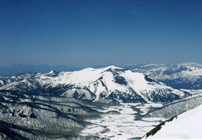 燧ケ岳頂上から尾瀬ケ原、至仏山を望む