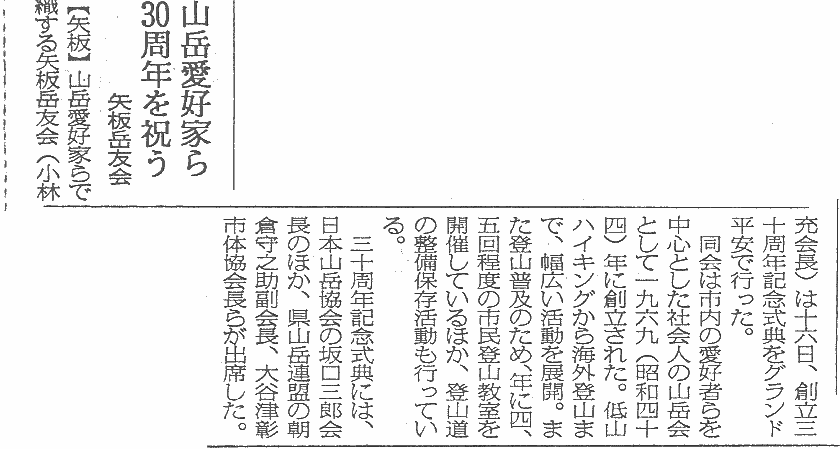 30周年記念式典会場にて 新聞記事と会員、OBのスナップ写真