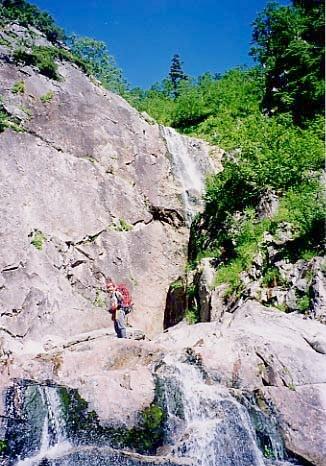 8/16(木)赤木沢の大滝をバックに