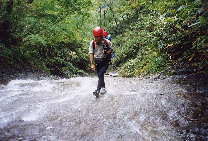 なめを行く浅川さん(この上流は素晴らしいナメ)