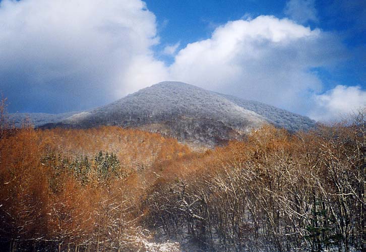 下山後、六角牛山を見上げる