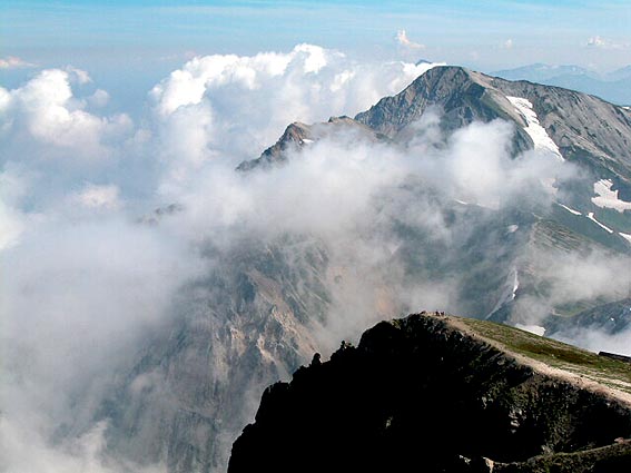 白馬山頂はさすがは有名観光地?なのだろうか、多くの登山客で賑わっていた。山頂の東側はすっ
