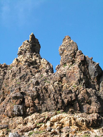淺川です。 8月26日、カリヤスモドキの撮影を目的に再度那須に行って来たので報告します。 前回山行から4日たったのですが、まだ白い穂の盛期にはなっていませんでした。 しかし、リンドウが随分咲き始めていました。秋は着実に近づいています。 ---------------------------------------------------------------- ローソク岩に久々にレンズを向けてみた。上空に雲の来るのを待ったが思うように 雲は流れて来なかった。この日、八時頃までは雲一つない晴天だった。