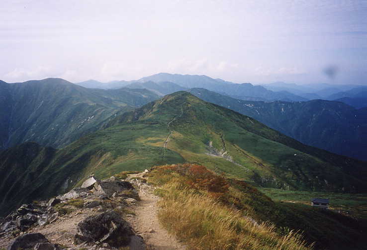 大朝日岳から中岳、西朝日岳、竜門、以東岳へと続く主脈を眺める