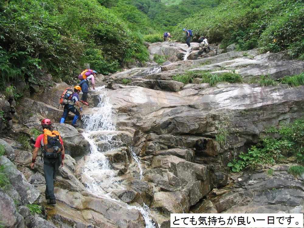 《日程》 事務所6:00===7:25林道終点7:33---8:30入渓点8:44---11:30二股12:00---12:56流石山14:28