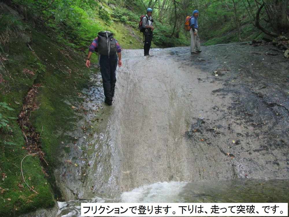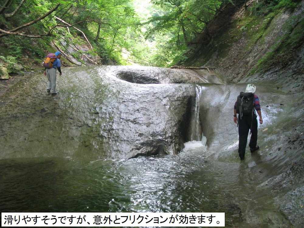 なめ滝が連続し、大抵はフリクションで登れるが、3mのなめ滝でも登れず、『巻き』を強いられる事も・・・。今日は