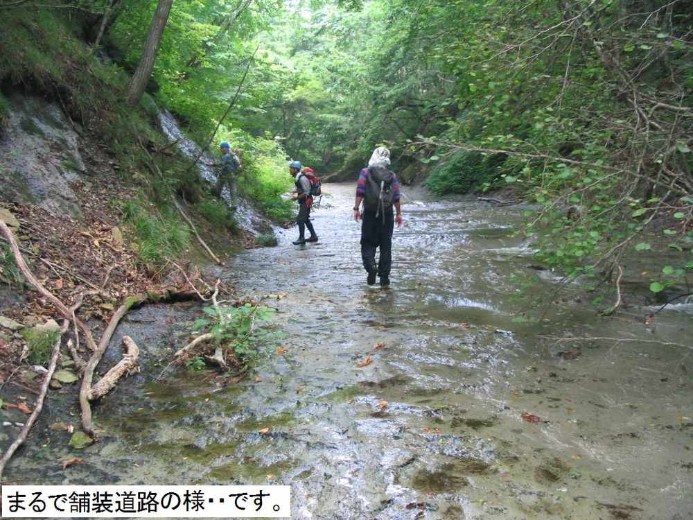 ら少しでガツオ沢に戻り、荷物をデポした地点へ戻る。ここでこの日も遅めの昼食を取り、帰り支度をし林道へと上る。