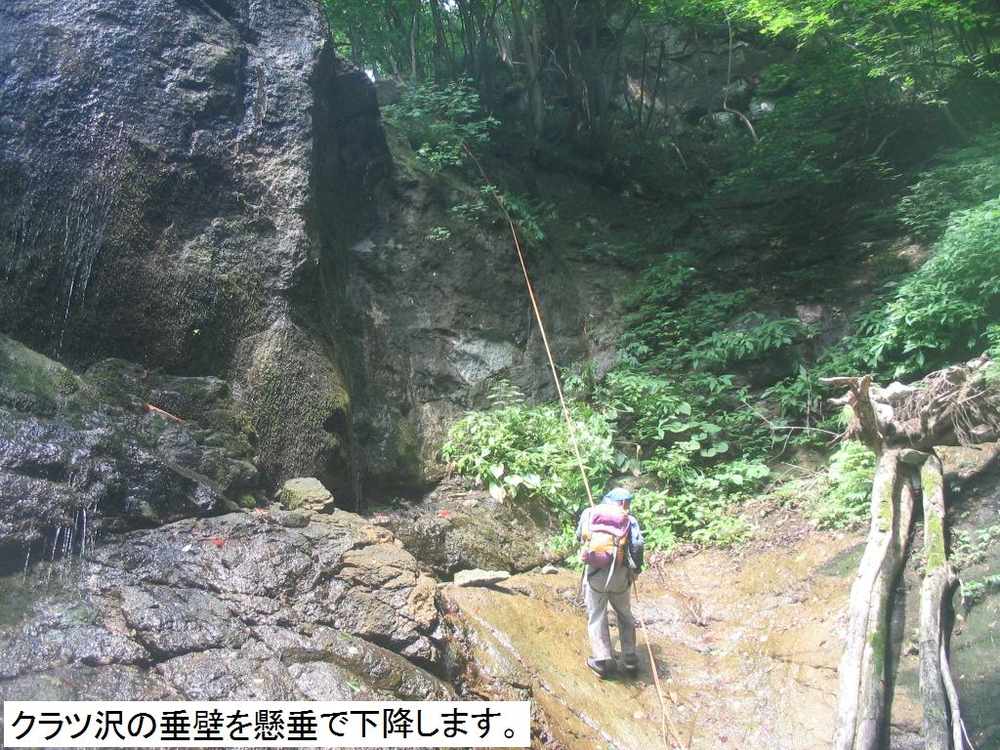 ツオ沢手前の15m弱の垂直壁・・上から下を見ることはできない。勿論巻きもできないので懸垂下降で降りる。そこか