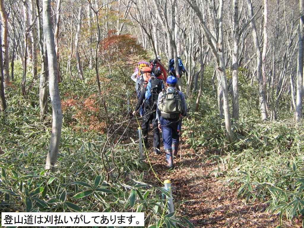 夏とは違い、葉も落ちて歩きやすく感じました。平成ブナまでは刈り払いがされていないところがかなり