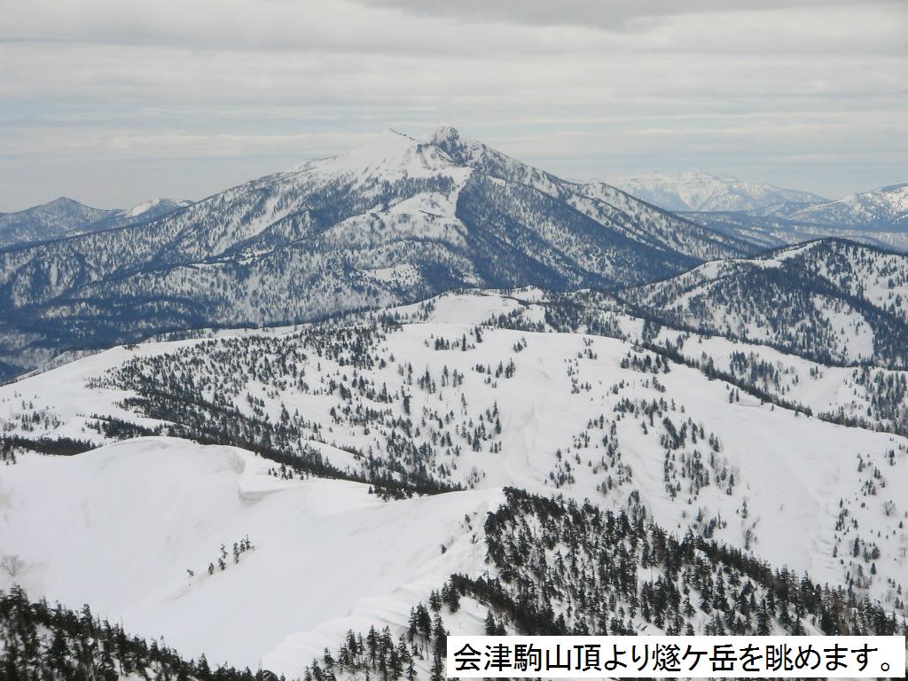 の頂上・・・。ちょうど会津駒の道標のてっぺんが雪の中から顔を出していた。ここから360度の眺望